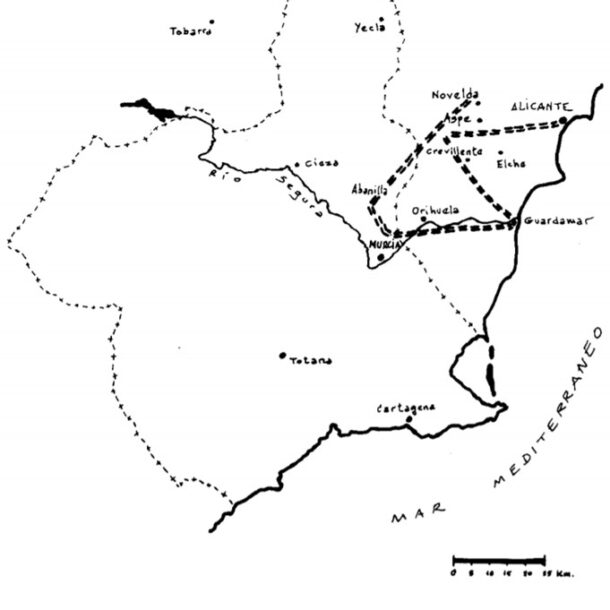 Map showing the cordon sanitaire between Orihuela and Alicante to prevent these cities from becoming infected by the plague at the end of the 17th...