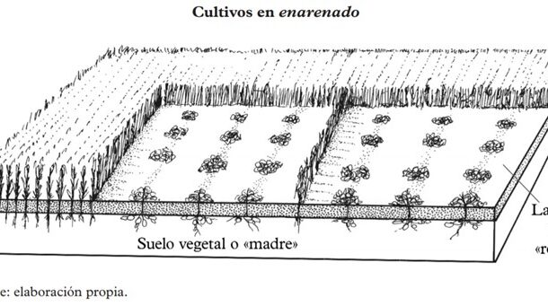 Resource showing how to grow crops that require water in Lanzarote, using volcanic elements and sanding...