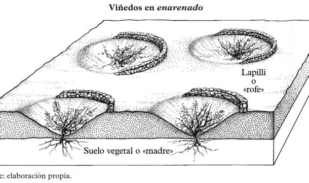 Resource showing how vineyards are planted under adverse climatic conditions with volcanic materials on the island of...
