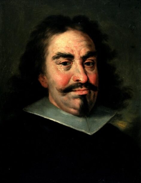19th-century portrait of a male figure in 17th-century fashion with a grave...