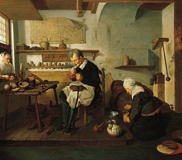 Socio-professional interior of a 17th-century shoemaker's...
